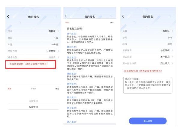 请务必仔细查看相关学校和区县报名政策,按照系统提示逐步进行填写。