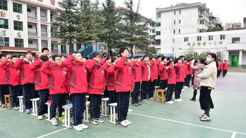 李欣瑞同学带领全体学生集体宣誓。