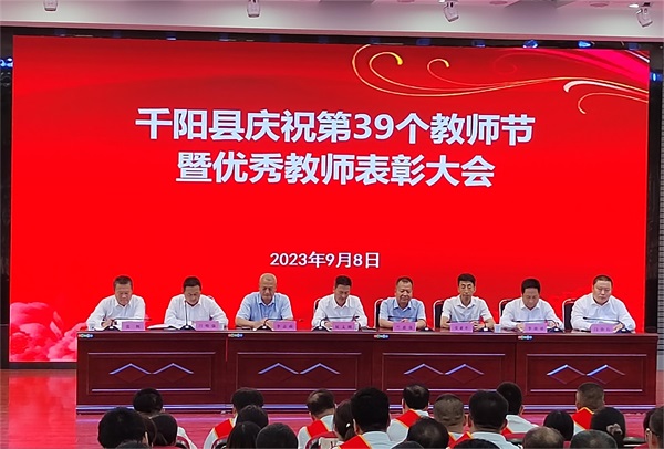 金秋芳华,硕果摇枝。在第39个教师节来临之际,9月8日下午,千阳县召开庆祝第39个教师节暨优秀教师表彰大会。县上拿出35万元,表彰了优秀校(园)长、优秀教师、优秀班主任、先进教育工作者、优秀毕业班教师和优秀学生等先进个人315名,激励广大教职工不忘初心,牢记使命,全力推动千阳教育事业高质量发展。县委常委、宣传部部长屈文刚、县人大常委会副主任、县总工会主席兰惠强、县政府副县长李志政、县政协副主席张亚平等县级领导出席大会。县政府副县长李志政主持会议。