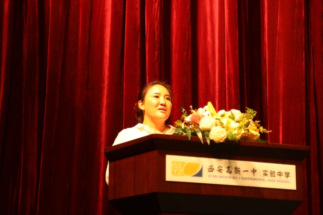 首届校友王克难的母亲毕敏女士作为家长代表上台发言。她在演讲中夸赞了高新一中实验中学的办学理念、教学方法,并祝福高新学子们都能在这里放飞梦想、学业有成。