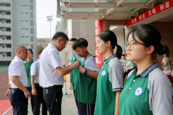 该校2024届优秀毕业生张恒学从清华大学发来贺信,希望学弟学妹们奋进途中、莫负年华。热烈的掌声中,学生向家长、初高中母校老师代表献花,校领导为高一新生佩戴校徽。新生代表作大会发言,号召同学们用劈波斩浪的姿态迎接新的挑战、新的未来,在高中三年踔厉奋发、勇敢攀登,为自己交出满意的青春答卷。