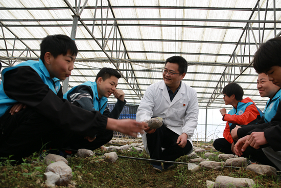 2022年3月24日,贵州遵义播州中等职业学校现代农艺专业部教师带领学生在羊肚菌实训基地学习。 视觉中国供图
