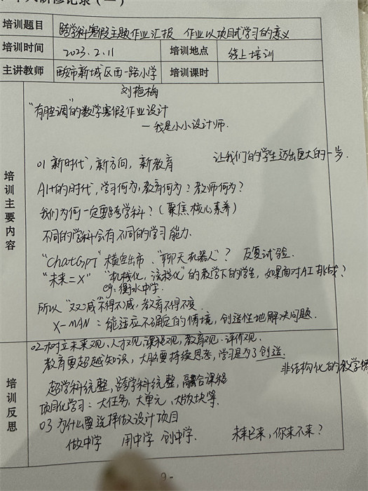2月11晚上19:00–21:00,鄠邑区北街小学全体教师受邀参加来自西安市新城区新知小学教育集团太华路小学和西一路小学教师团队“作业革命第五期第一场”之“跨学科寒假主题作业汇报 作业以项目式学习方式启动的意义”的主题线上培训学习。