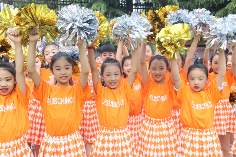 鲜衣怒马少年时,不负韶华行且知。奋进的旋律,创意的编排,灵动的舞姿,各年级方阵带着自信与从容,舞动春天,舞媚童年。