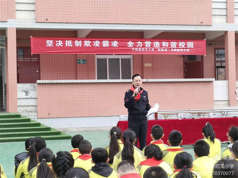 为了加强校园安全管理,弘扬校园正能量,更好地防范中小学生欺凌事件的发生,促进学生身心健康,建设平安、和谐校园。2024年3月27日千阳县启文小学召开了“坚决抵制欺凌霸凌•全力营造和谐校园”的“防欺凌”专题教育大会。本次大会由千阳县启文小学校长李恒力主持,邀请千阳县城关镇派出所副所长田野为全体师生及家长代表作宣讲。