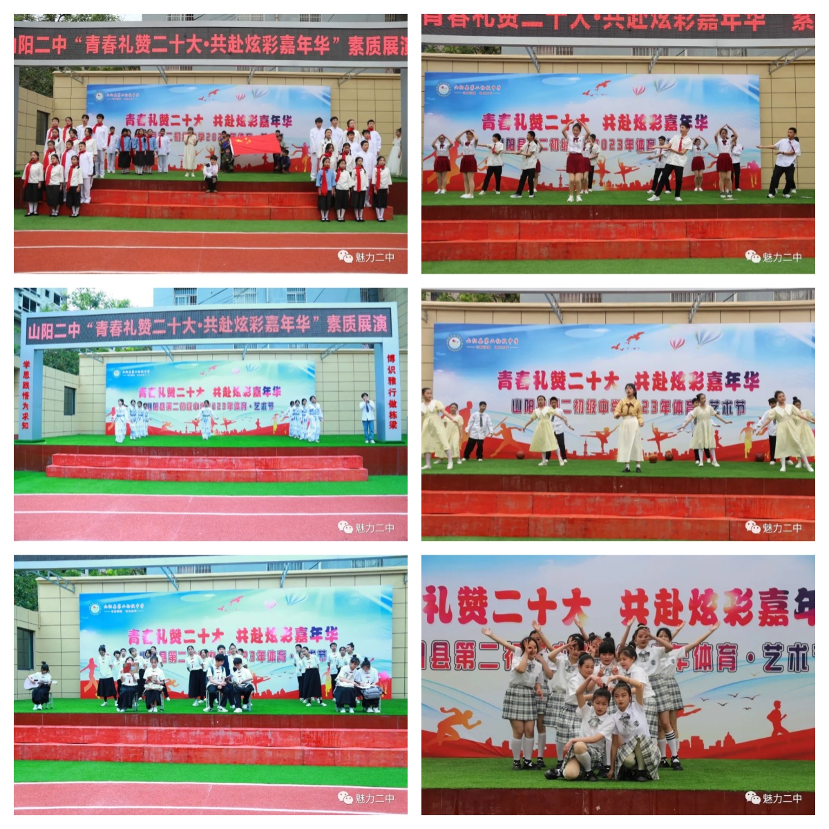 为进一步丰富校园艺术文化生活,营造积极向上、清新高雅、和谐健康的校园艺术文化氛围,全面展现新时代青年人的青春活力和昂扬风采,山阳县第二初级中学4月25日上午举行2023年体育·艺术节开幕式之“青春礼赞二十大,共赴炫彩嘉年华”素质展演。