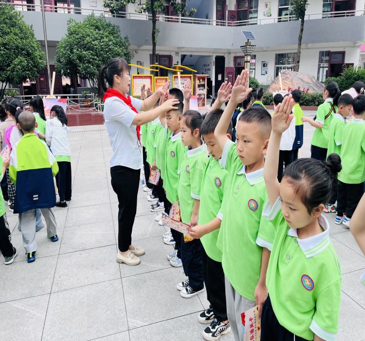 活动的高潮部分,“歌声嘹亮,余音绕梁”和“誓言铭记,声声动听”两个关卡更是将现场气氛推向了顶点。全体新队员齐声高唱少先队队歌,庄重宣读少先队誓言,嘹亮的歌声和坚定的誓言响彻整个校园,充分展现了他们的集体荣誉感和归属感。