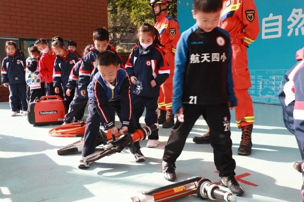 迎着清晨的第一缕阳光,西安航天基地富力城黄河小学的孩子们在老师的带领下着装整齐,怀揣自己的“小期许”“小问题”,向航天基地消防大队出发。“今天近距离地接触消防车,了解了消防员叔叔出警所带的安全锤、消防斧、破拆剪、呼吸器、水炮水泵等消防工具的详细用途,还感受到了消防员叔叔的专业和勇敢!”参观现场,孩子们积极提问,收获颇丰。