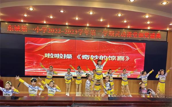 舞动的身姿、朝气蓬勃的氛围彰显一小灵动课堂的风采,东城一小啦啦操社团带来的啦啦操《奇妙的惊喜》用轻松愉快的步伐传递一小火文化的热情。