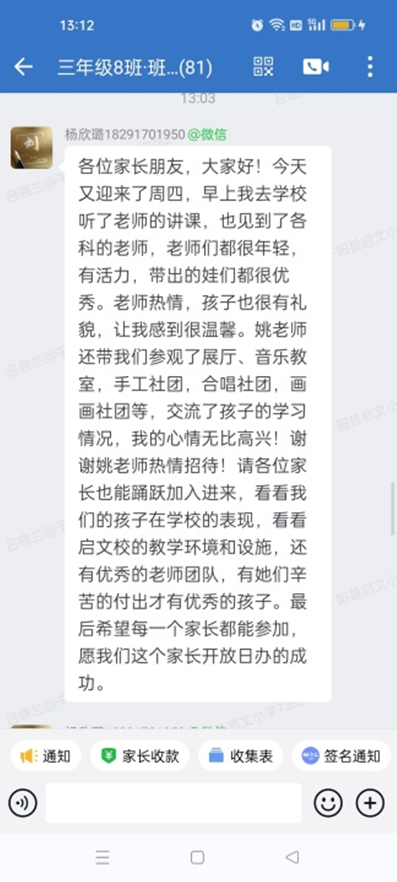 短暂的相约,温暖而有爱;教育的力量,源远而流长。此次家长开放日活动,既是一次成长的陪伴,也是一场用心的沟通,给予孩子们的是无尽的快乐,留给家长们的是无穷的回味。以爱相约是教育的开始,共育未来是责任的邂逅。同心同行,家校共育,未来可期!启文小学将继续以开放的姿态,与家长朋友们一起携手同行!