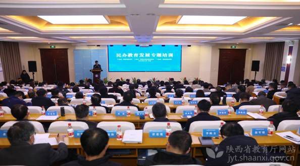 陕西省民办教育协会会长郝利生出席培训会。各市(区)教育局分管负责人,全省民办高校、独立学院举办者(或其代表)、党委书记(督导专员)、校长、办公室主任,省属民办非学历高等教育机构举办者(代表),省教育厅校外教育培训监管处(民办教育处)、省民办教育协会共计180人参加培训。