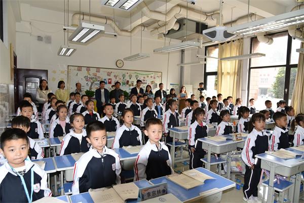 孩子们整齐有序的起立、立正,向老师问好。立正时,昂首挺胸,像松树一样挺拔和端庄,以精神抖擞的精神进入课堂。